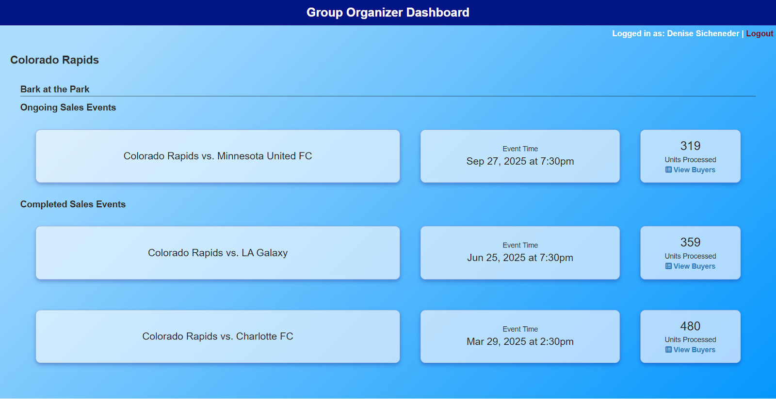 Group Leader: A user with this title has access to see the overall numbers and a report per sales event of all buyers and their data.