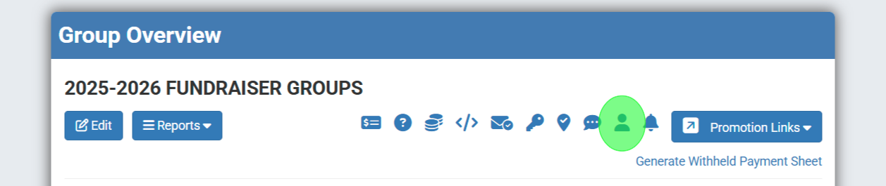 In the Spinzo platform, at the group level the person icon opens up the ability to assign one or more group organizers.