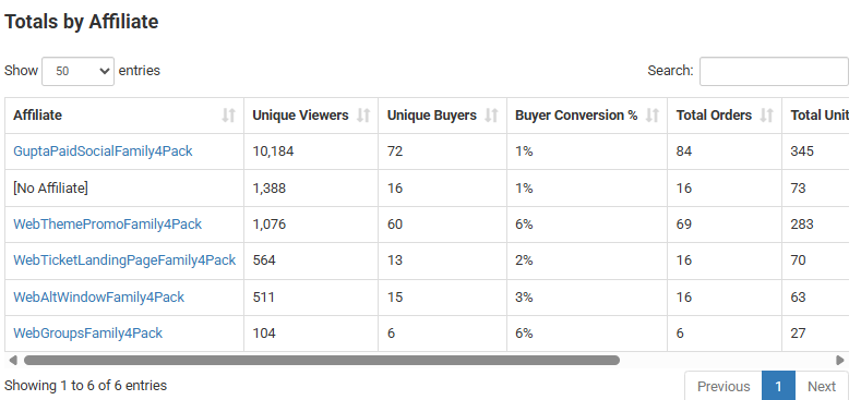 Using Spinzo affiliate links, the Hornets were able to measure engagement and revenue by channel, gaining real insight into what actually drove conversions. Paid social led the way, generating over 10,000 unique views and $9,870+ in revenue, while theme-based promotions and web placements combined for over $10K more. Even smaller channels like group and alternate web placements showed higher conversion rates, proving that different audiences respond to different entry points.