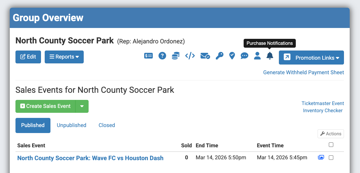 *Note: This will provide notifications for any orders that come through for the group and will include all sales events.