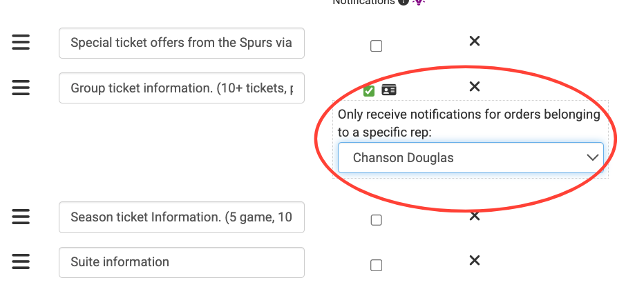 *Note: This will provide notifications to this specific representative for any customers that select this response on a page that is tied to the specific representive's name.