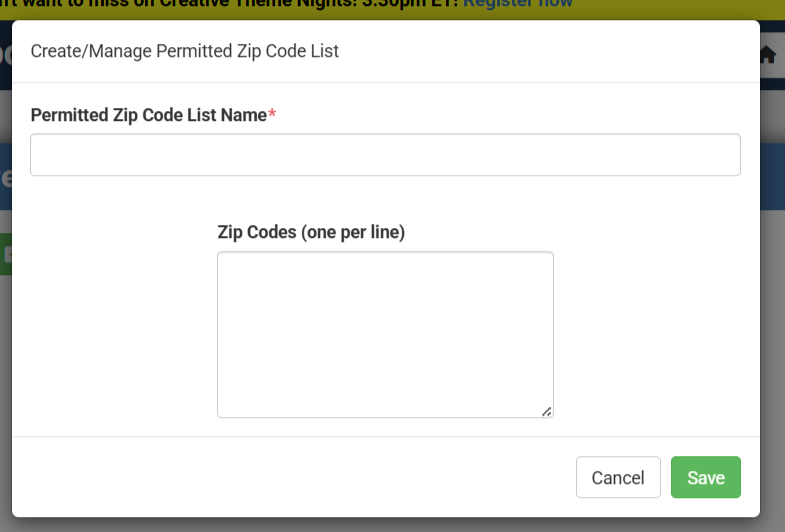 Offers can be restricted to buyers within specific zip codes, making it easy to target local fan bases, regional promotions, or community-focused groups. Permitted Zip Code lists are created and then tagged to offers, sales events, groups, or even at the seller level for all promotions. Multiple zip code lists can be added to a single offer for flexible geographic targeting.