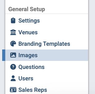 Step 1: Go to the "Images" tab in the left-side menu under "General Setup." It's located below "Branding Templates."