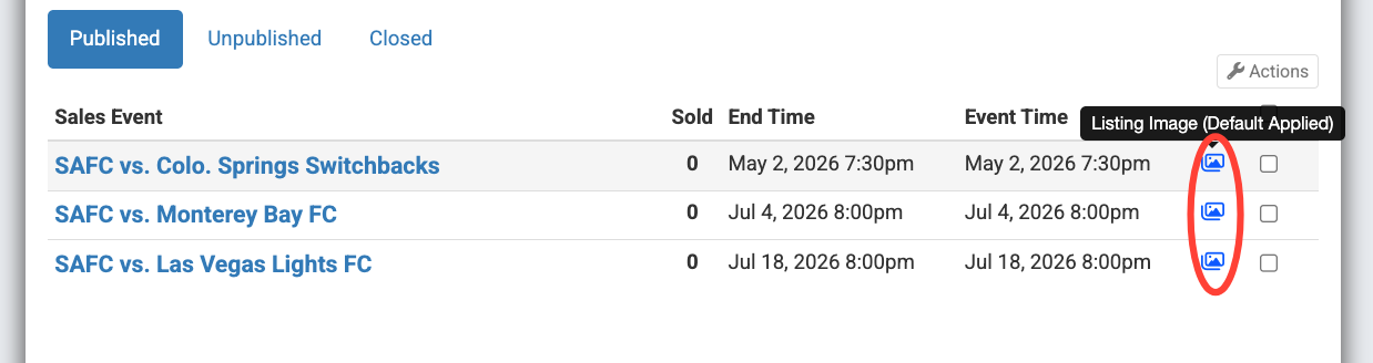 Listing images are often used for match-up images, and many teams set the match-up images as the default for a season. However, these images can be updated to better reflect specific promotions like merchandise giveaways, fan experiences, or sponsored events.