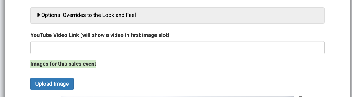 Step 2: Scroll to the bottom of the page and locate "Images for this sales event." It's located below "YouTube Video Link."