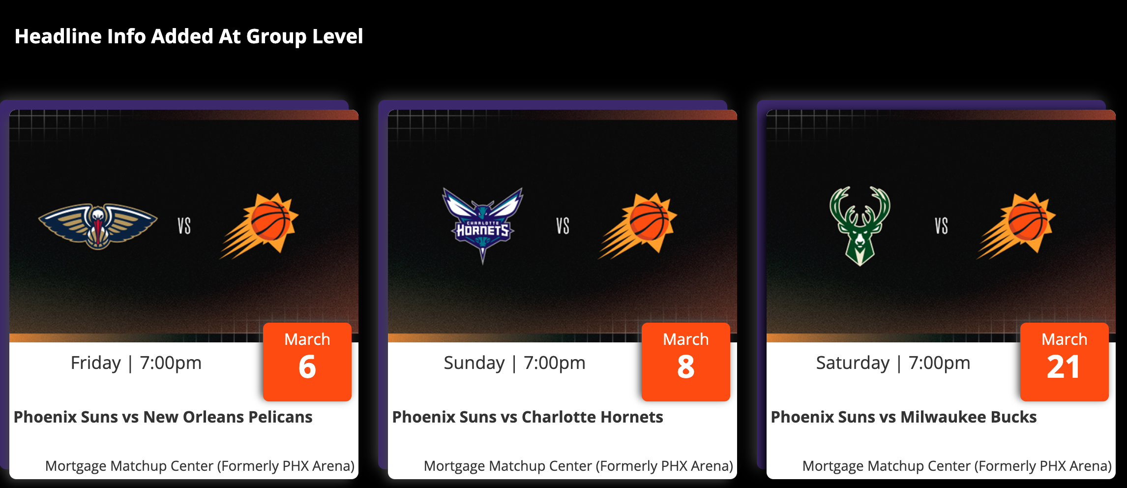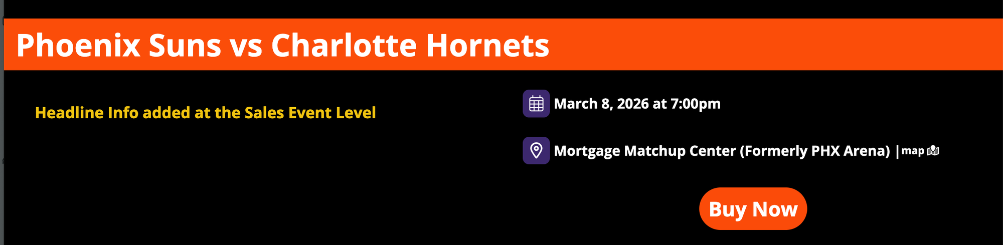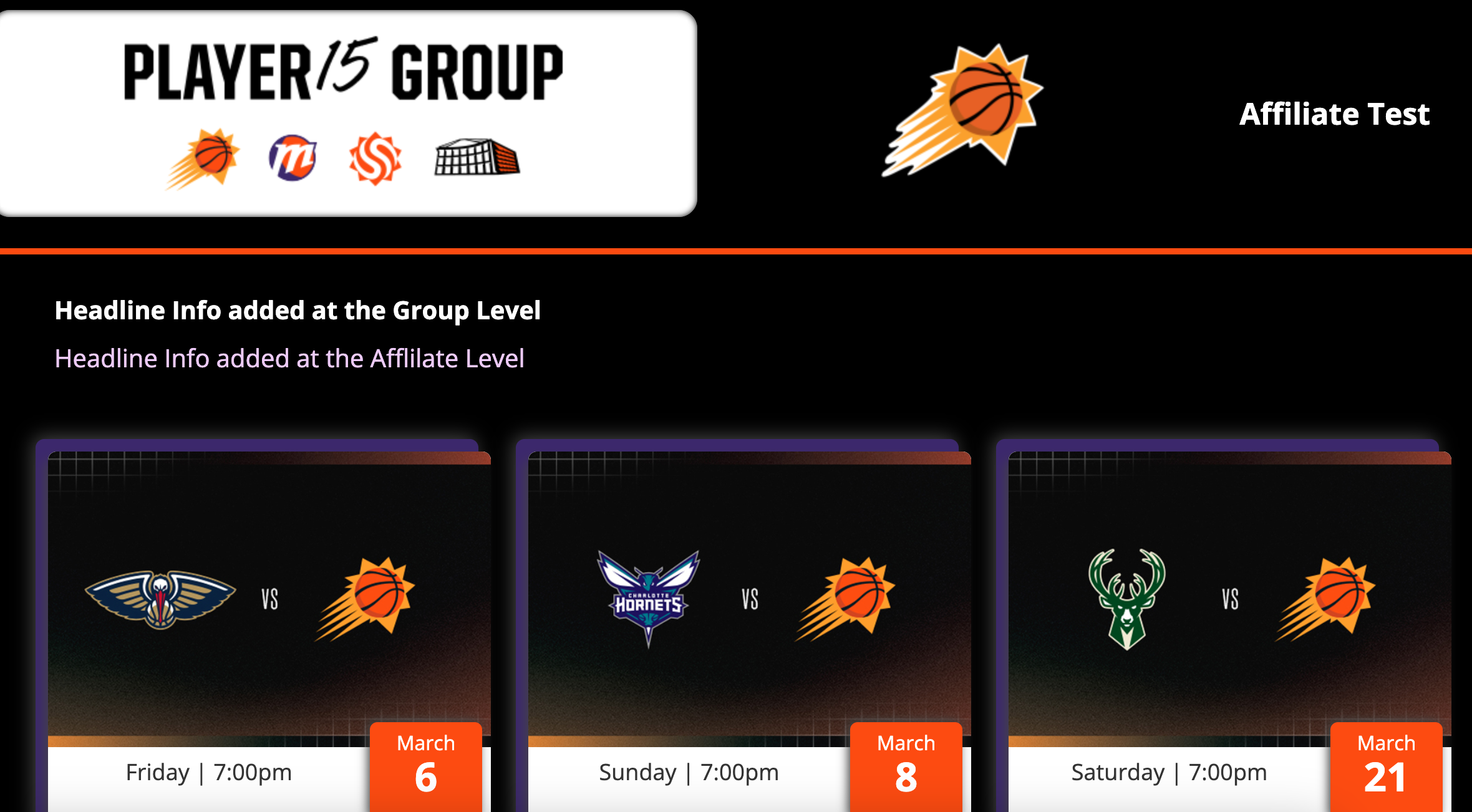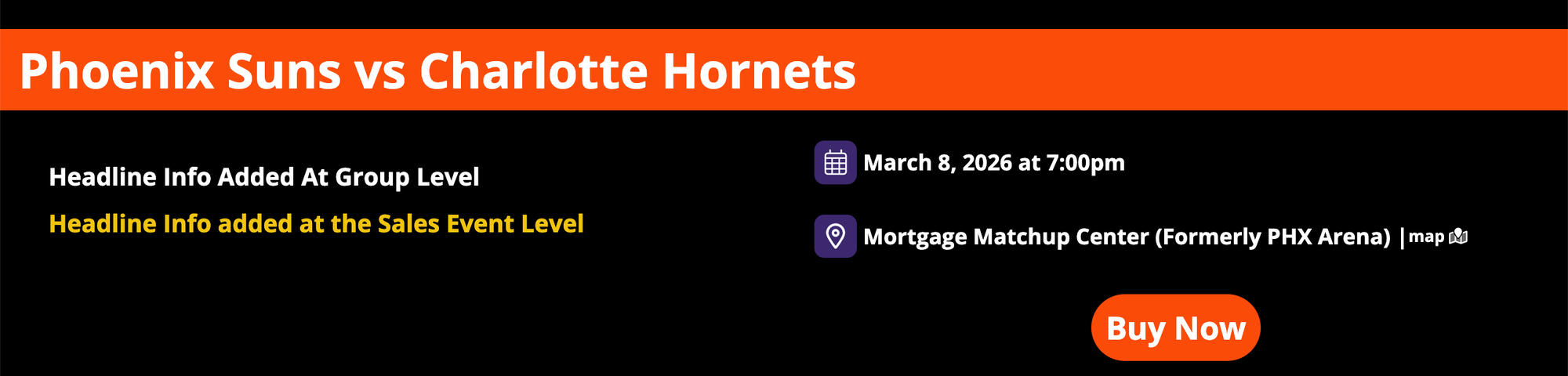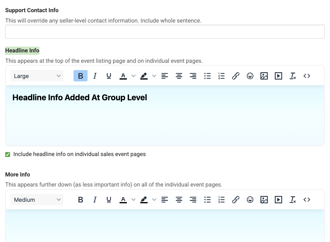 Adding "Headline Info" at the sales event level will apply it to a specific game or event date page and will also add it to the affiliate page for that sales event. It's important to note that if headline information has been added at the group level, this content will appear below that information. If there is no "Headline Info" at the group level, then this information will be the main description of the page.