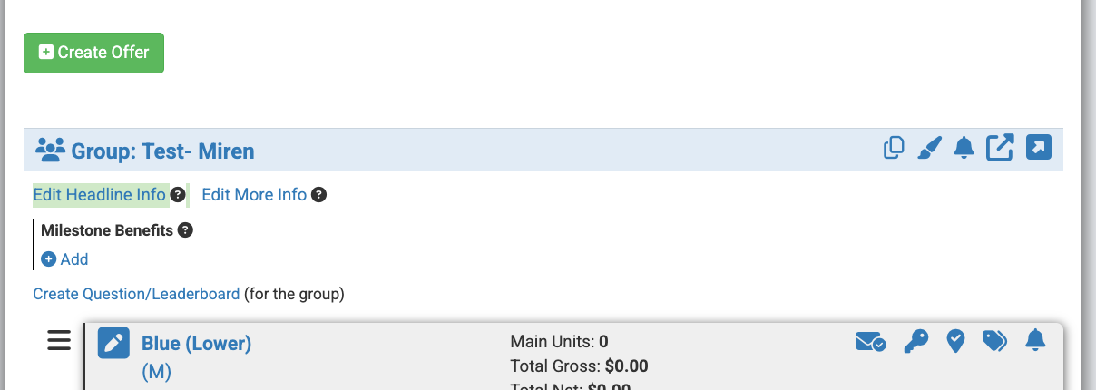 Step 2: Click "Edit Headline Info" (located below "Create Offer" and above "Milestone Benefits").