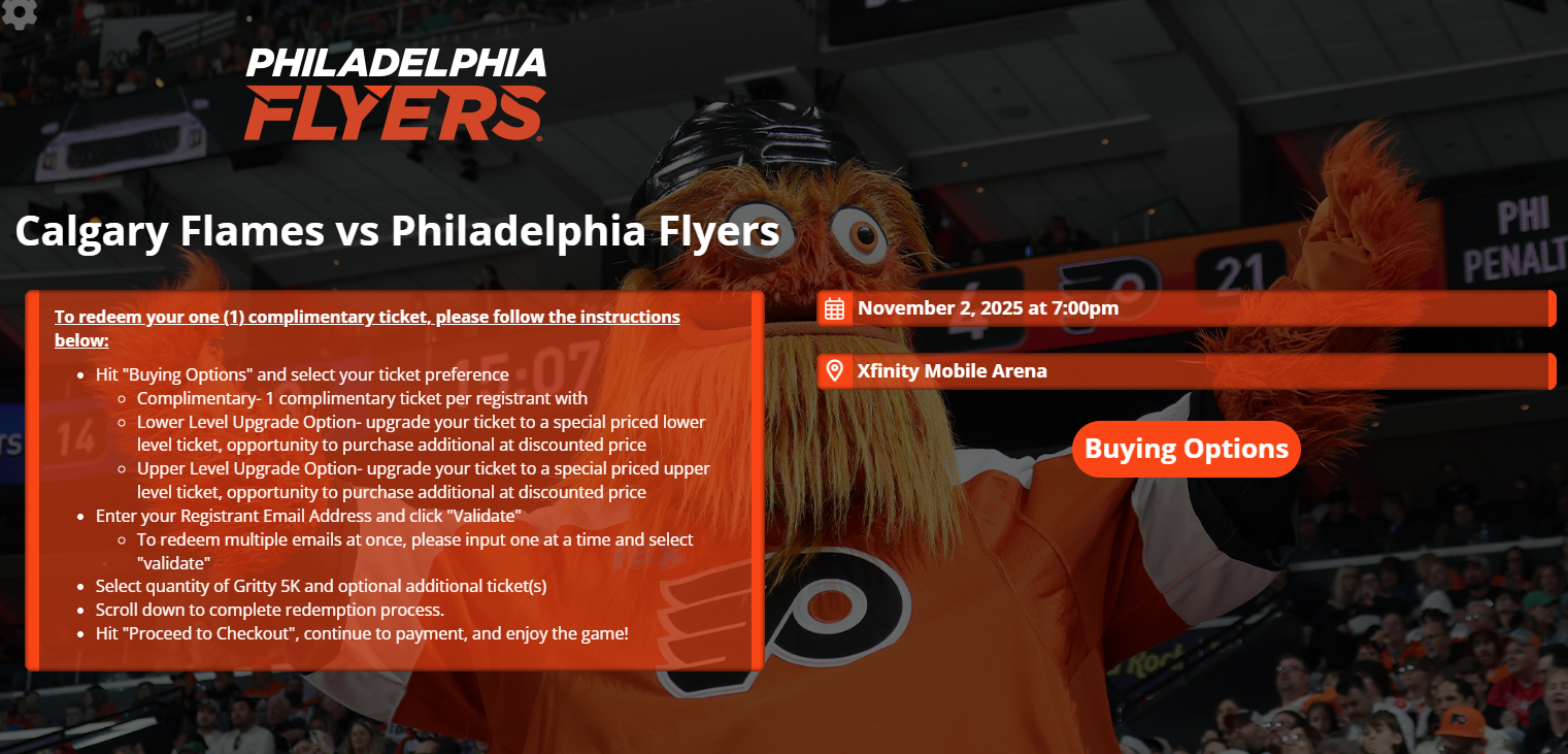 Each runner gets a complimentary ticket plus access to discounted additional tickets. This year, the Flyers introduced upgrades—showing how a 5K can evolve from a giveaway into a true upsell opportunity.